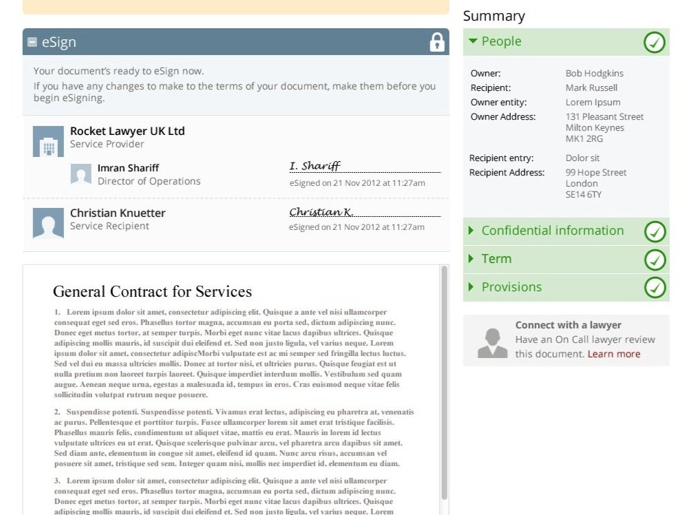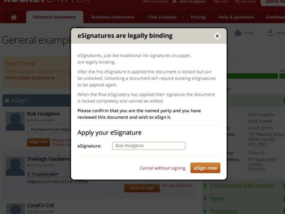 In 2013 Rocket Lawyer made a conscious decision to move away from 3rd party solutions for electronic signatures. There was an opportunity to have signatures, along with the company’s core Legal Document product, as a key offering to encourage users to keep their subscriptions for longer, increasing the value for our product and customer LTV.