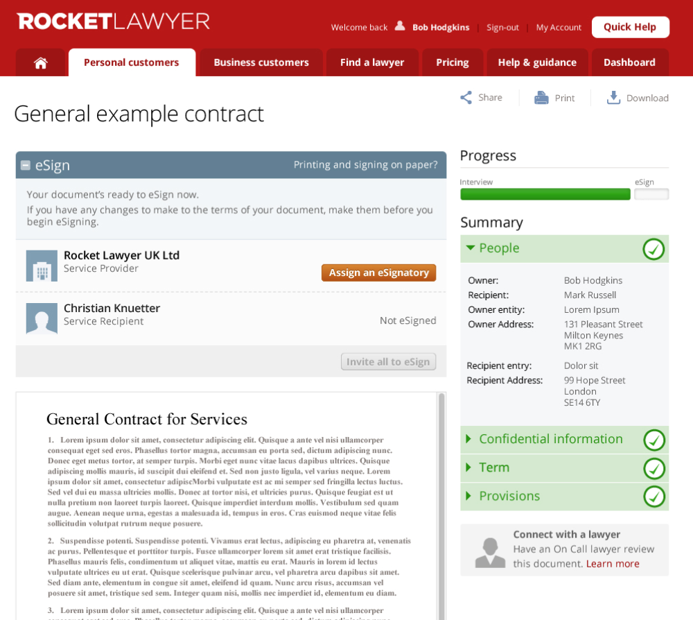 During my tenure at Rocket Lawyer, I was responsible for a series of key products across the business, ranging from Legal Documents, eSignatures, Accounts, and more. I’ve included here some of my most notable product creations.
