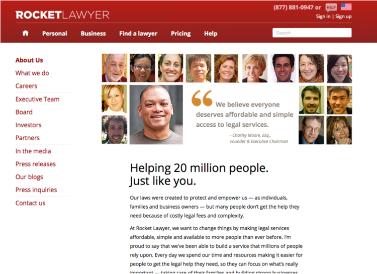 After extensive research on competitor offerings and deliberation on how to communicate easy and affordable access to legal services, I worked with marketing and design to deliver a complete brand refresh at Rocket Lawyer. I cataloged all of the website user flows, documents, articles, and resources to organize the work required to make Rocket Lawyer red. I partnered with other members of the product team to organize the engineering effort and helped lead a final company-wide sprint to ensure a smooth transition.