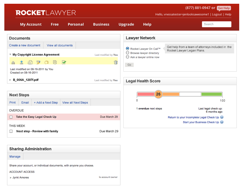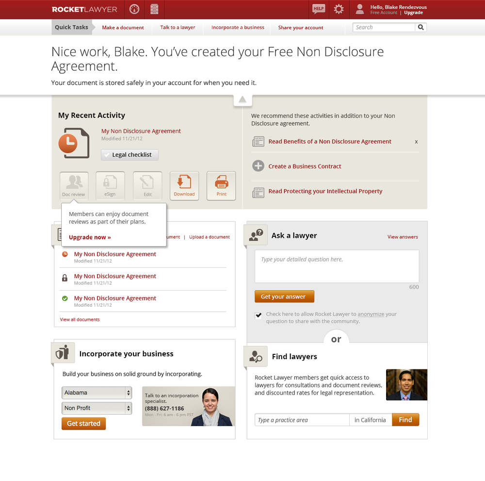 Clarifying Rocket Lawyer’s Dashboard & Navigation